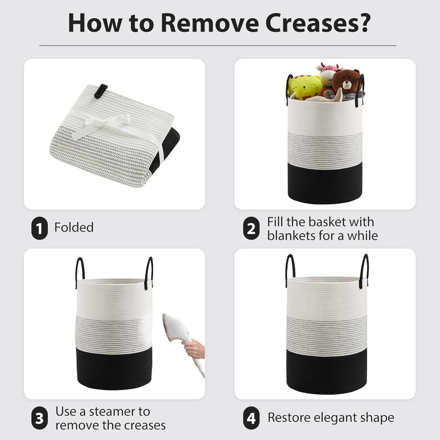 ❤【100% Satisfaction Guarantee and Note】Your satisfaction is our motivation. If you are not satisfied with your purchase or have any questions, please feel free to contact us and we will try to resolve any issues to ensure your satisfaction. NOTE: For more efficient shipping, the laundry basket you get is folded, you just need to fill it with a towel or bath towel or lightly steam it and it will return to its sleek shape!