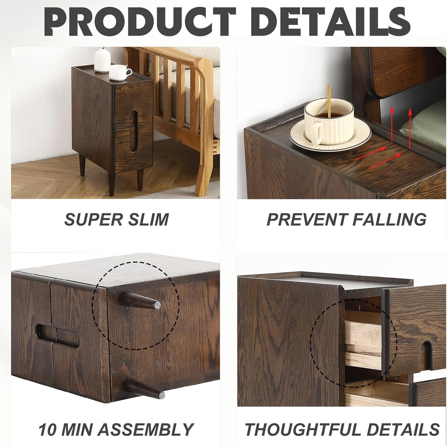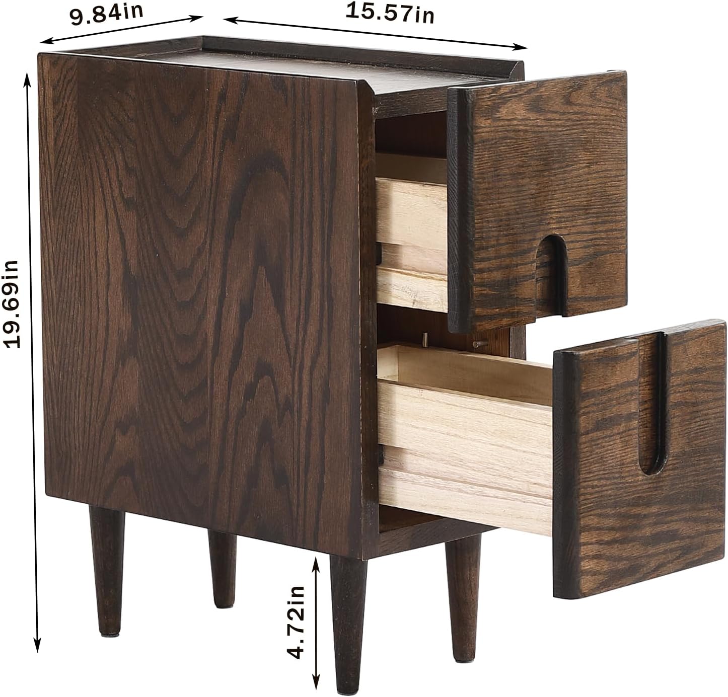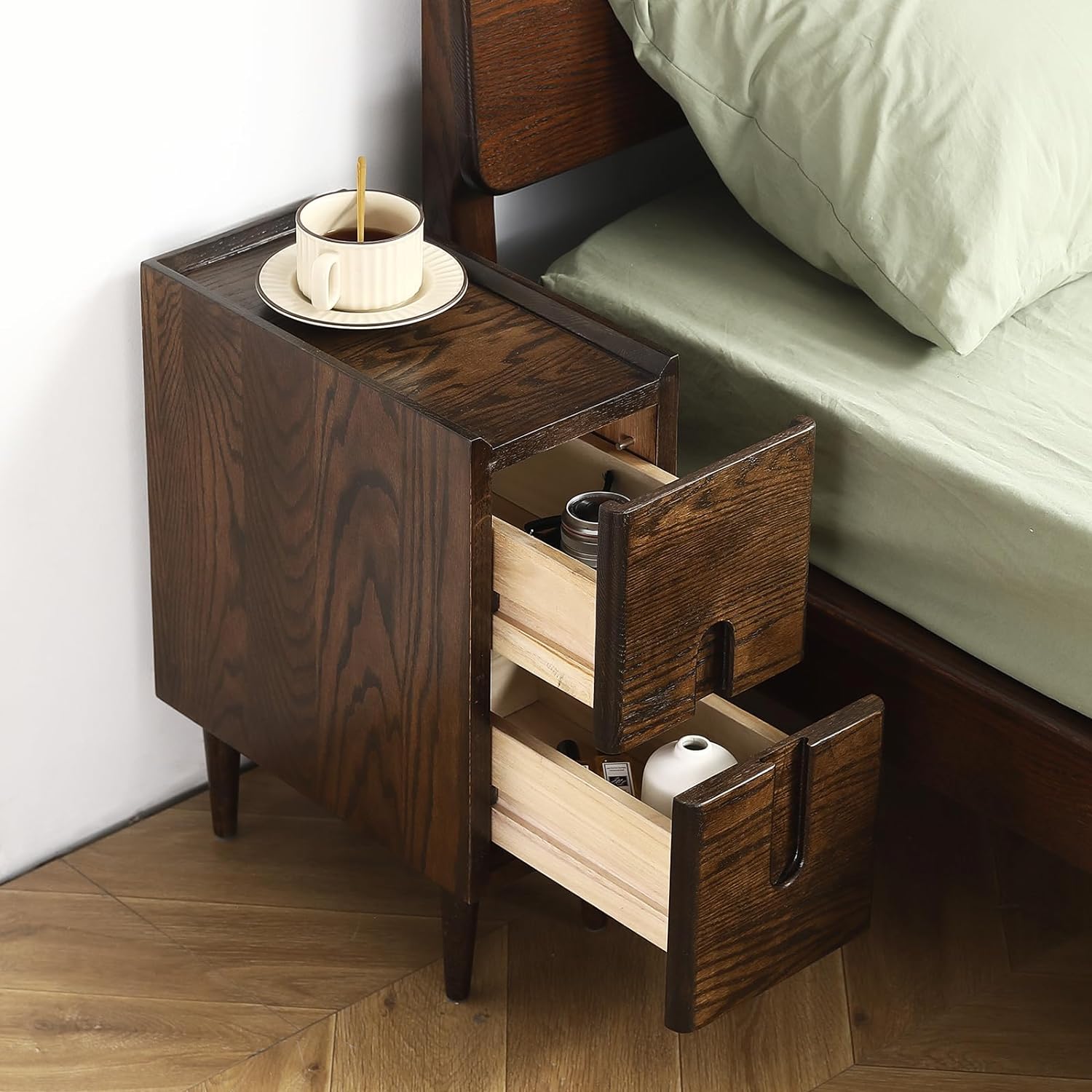 Fetuero Solid Wood Bedside Table Nightstands, Slim Narrow Oak Real Wooden Mid-Century Modern End Table with Drawers Luxury Side Table Durable Cabinet Organizer Furniture, Walnut Color 7.87in WideCreate a new description for this product from the title with 500 characters