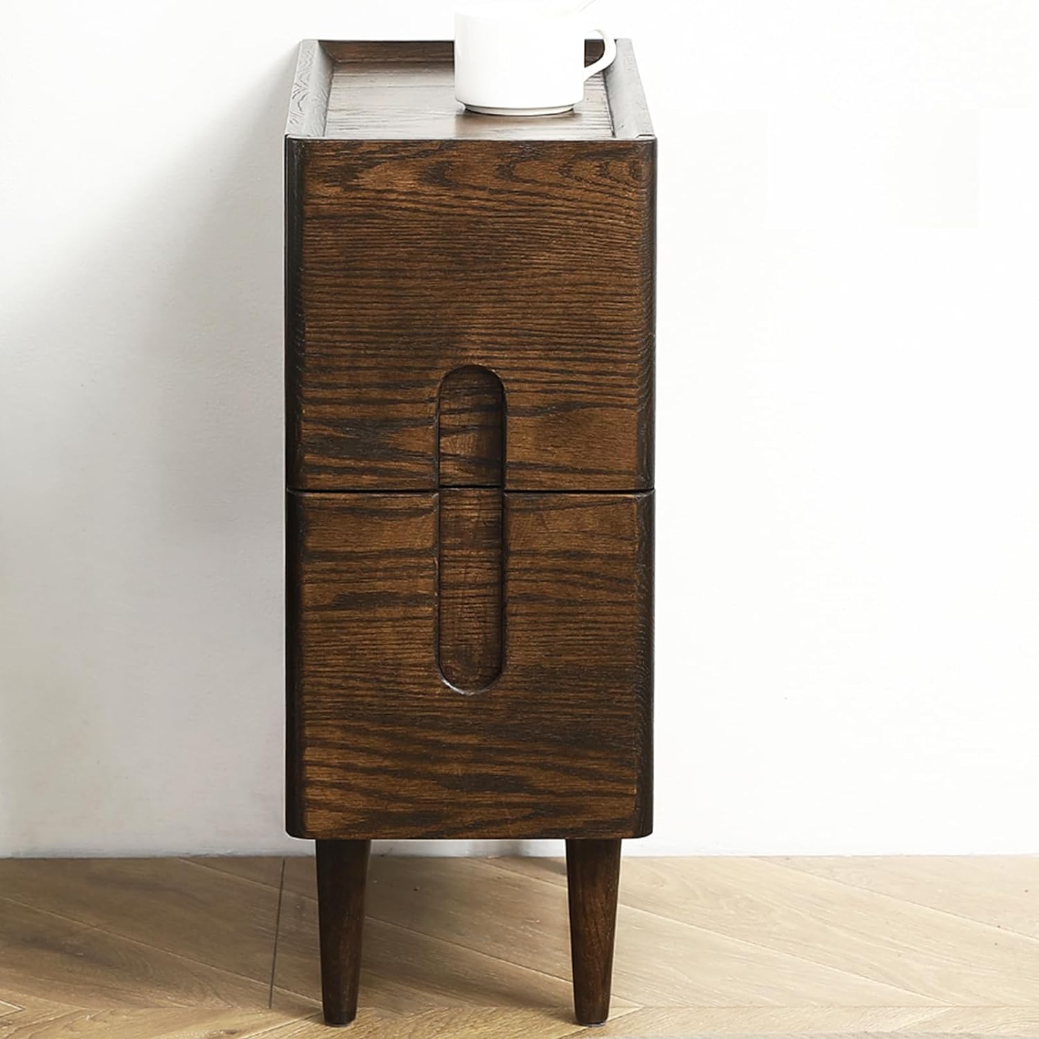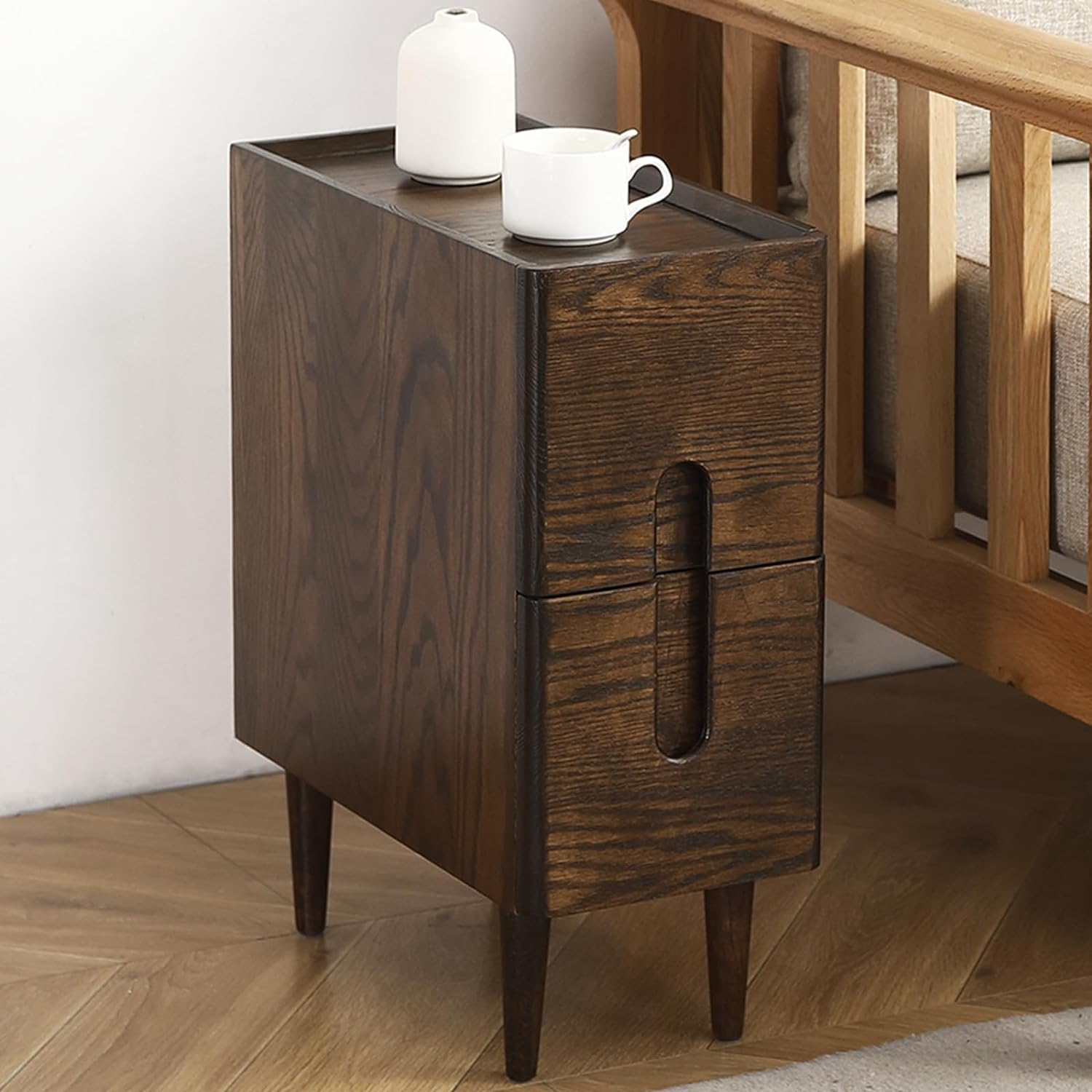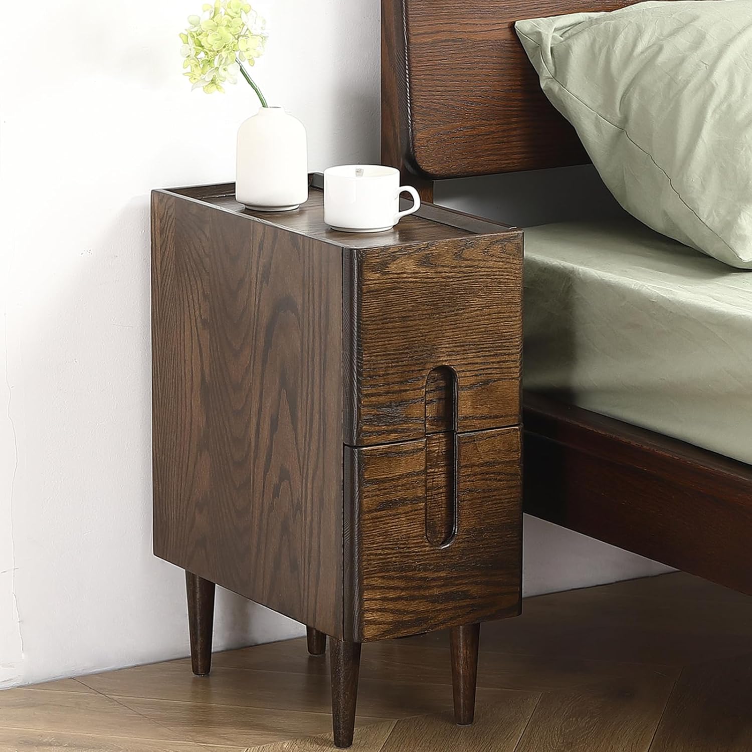 Fetuero Solid Wood Bedside Table Nightstands, Slim Narrow Oak Real Wooden Mid-Century Modern End Table with Drawers Luxury Side Table Durable Cabinet Organizer Furniture, Walnut Color 7.87in WideCreate a new description for this product from the title with 500 characters