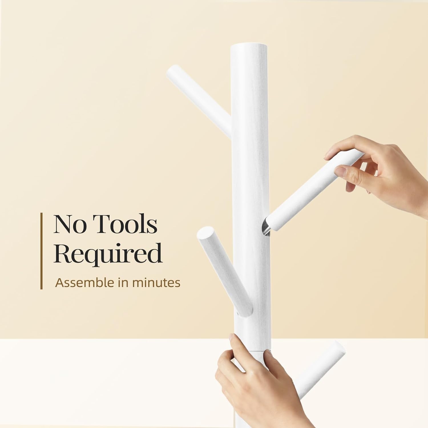 Fast & Easy Assembly: Assemble the coat rack easily in a matter of minutes. Simply tighten the rack column and hooks using the threaded inserts to quickly have your coat rack put together without the need for tools.