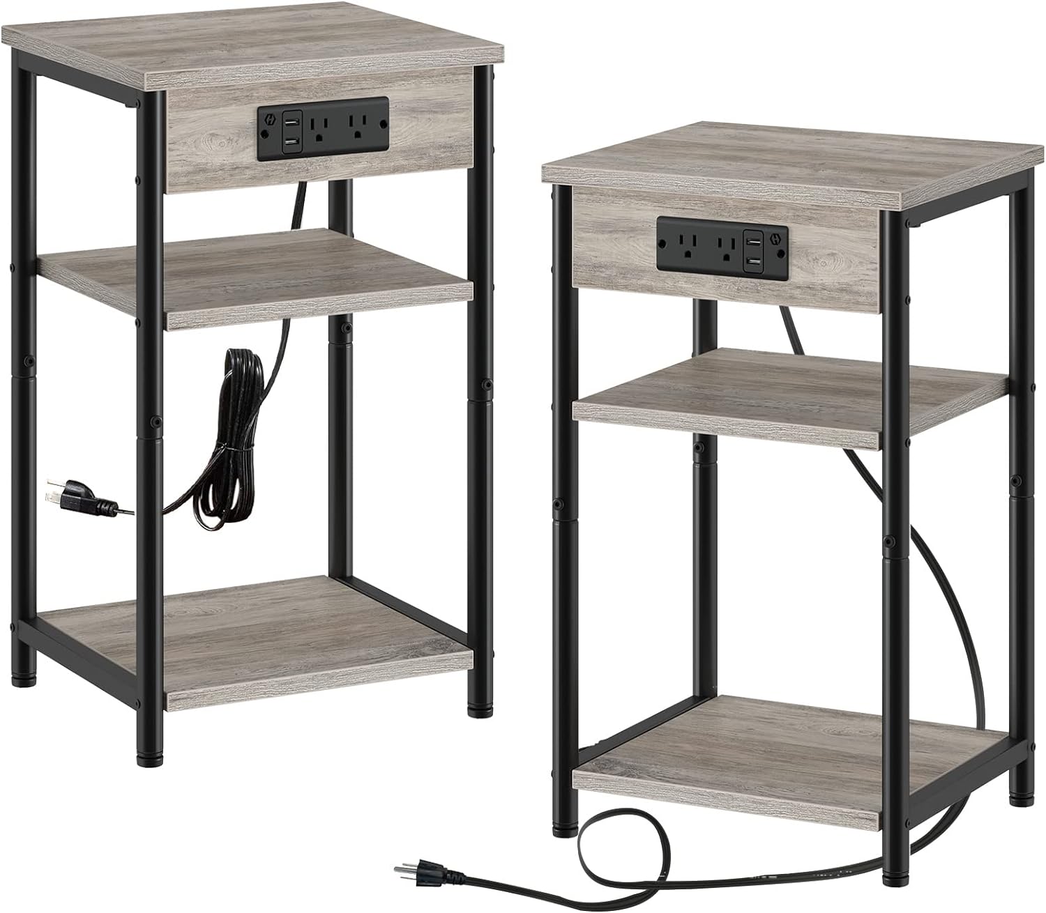 Rolanstar End Table with Charging Station, Set of 2 Nightstand with 3 Storage Shelves, Narrow Side Table with USB Ports & Power Outlets, Small Sofa Table for Living Room or Bedroom, GreigeCreate a new description for this product from the title with 500 characters