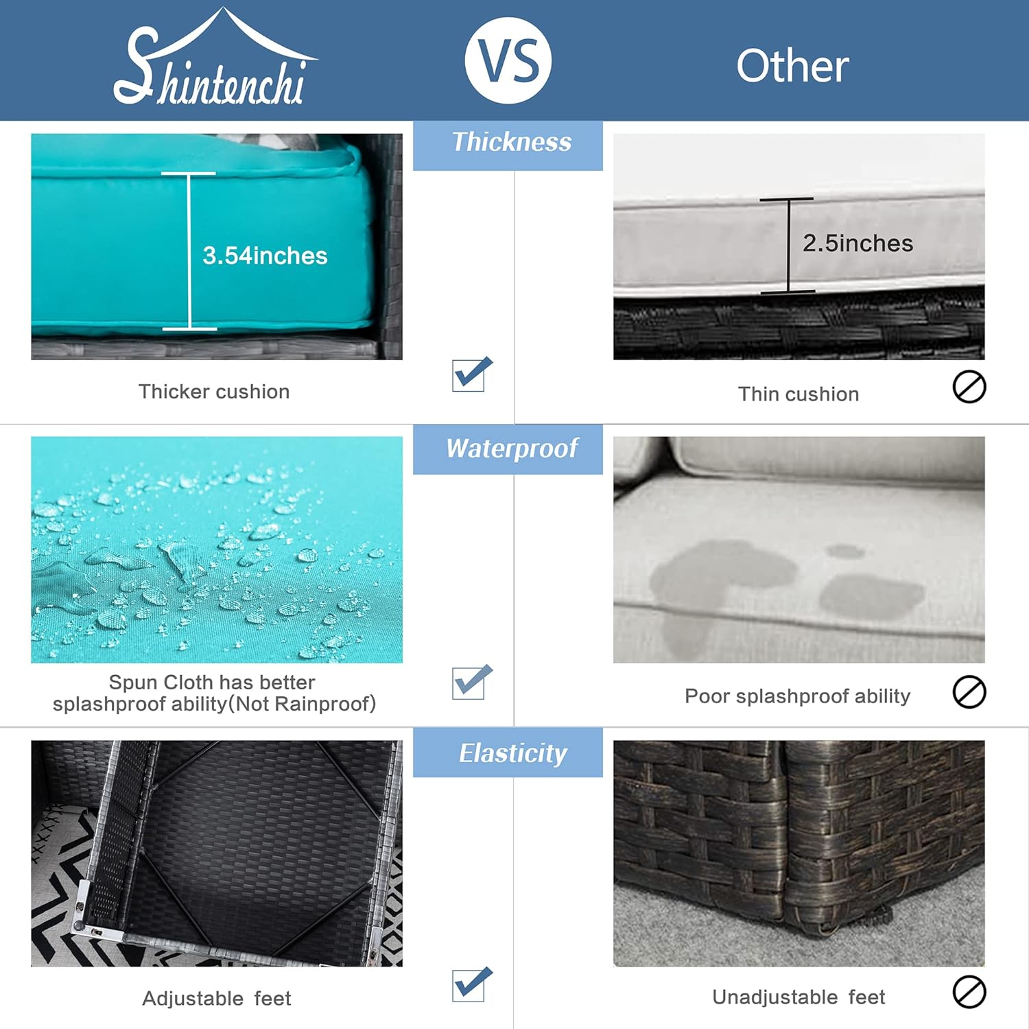 Shintenchi outdoor set Create a beautiful outdoor seating area that you have always dreamed of with this Patio Furniture Sofa Set from Shintenchi. Constructed from a lightweight aluminum frame and hand wovenfrom the top quality pe resin wicker fiber meticulously designed to provide you with the most comfortable and relaxing outdoor lounging experience.